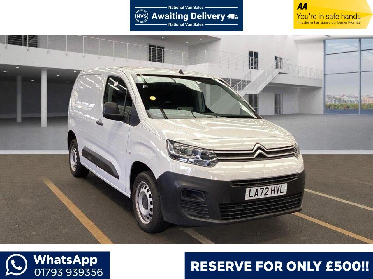 This 2022 Citroen Berlingo Enterprise Edition M boasts a full service history and has had only one owner from new. This 1.5 BlueHDi 1000 Enterprise Edition M SWB Euro 6 (s/s) 5dr model is equipped with a 1.5 litre diesel engine and meets Euro 6 emissions standards. It comes with a 3 month warranty and a 12 month MOT will be provided on purchase. The vehicle has a full service history, with the last service completed at 76808 miles on 06 February 2026. Notable features include front, rear, and lateral parking sensors with blind spot detection, electric folding mirrors, and fog lights. Inside, you will find Mirror Screen with Apple CarPlay and Android Auto, air conditioning, and an 8in colour touchscreen with Citroen Connect DAB Radio, Bluetooth handsfree, and a USB socket. The headlights are height adjustable and automatically turn on.