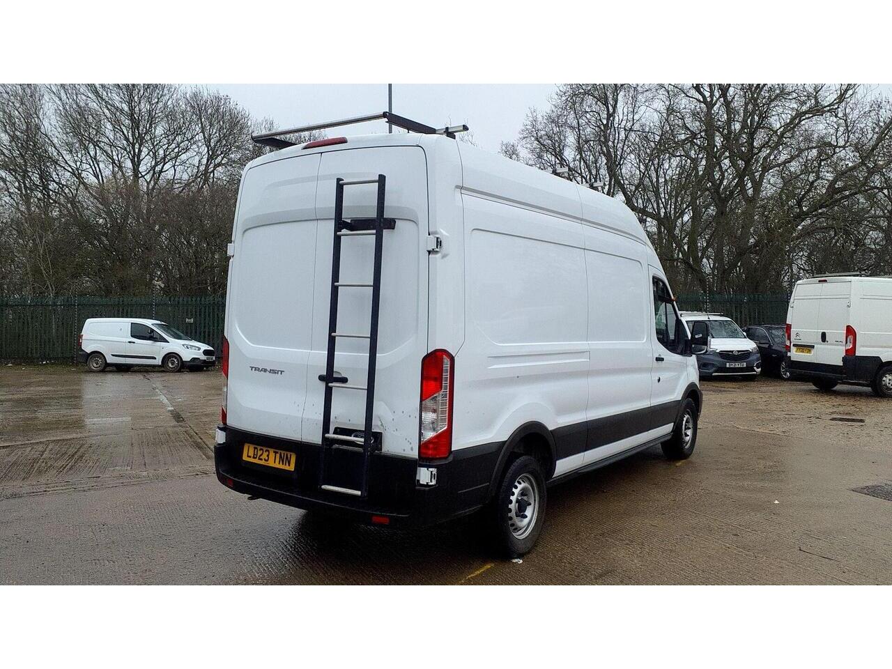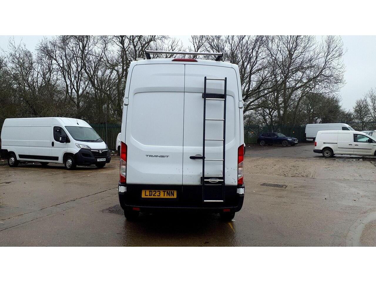 This 2023 Ford Transit 2.0 350 EcoBlue Leader FWD L3 H3 Euro 6 (s/s) 5dr boasts a full service history, with its last service completed at 61093 miles on 28 February 2026, and has had only one owner from new. This robust 350 Leader variant is powered by an efficient 2.0L Diesel Euro 6 engine and offers a substantial towing weight of 2800 kg. It comes equipped with the Basics Pack 2, featuring front and rear parking sensors for enhanced manoeuvrability, and a 4.2in Monochrome TFT screen with the new SYNC 4 system, including Bluetooth connectivity. Additionally, the door mirrors are fitted with blind spot eliminators and integrated side indicators, incorporating Blind Spot Assistance for added safety.