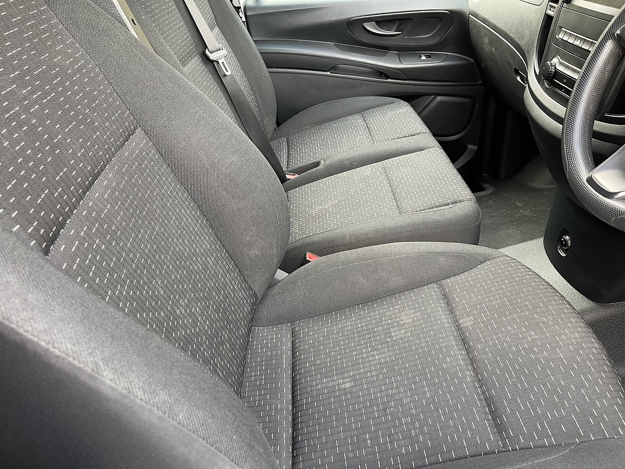 The eVito stands out with its practical cargo capacity, offering a generous 6000 litres of volume, making it ideal for transporting goods. The Headlight Assistant automatically adjusts headlights, enhancing safety during varying light conditions. These features collectively demonstrate the eVito's suitability for a wide range of commercial needs, providing a blend of efficiency, comfort, and substantial load carrying capability within the electric van segment.